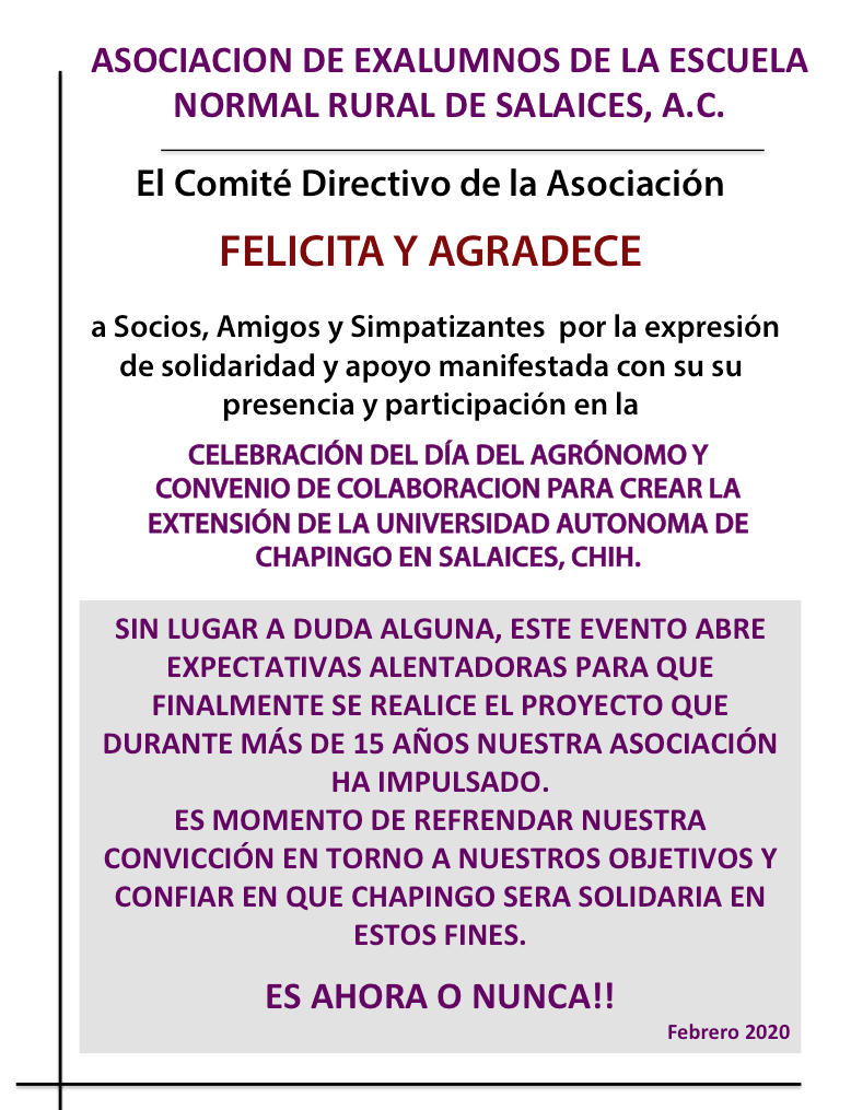 ASOCIACIÓN DE EXALUMNOS DE LA ESCUELA NORMAL RURAL DE SALAICES, A.C.